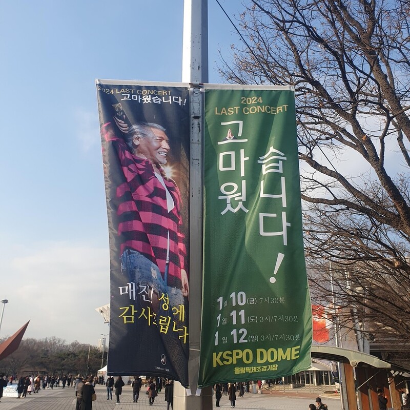| ▲ 나훈아 마지막 콘서트 '2024 라스트 콘서트 - 고마웠습니다!' (서울=연합뉴스) 이태수 기자 = 12일 오후 서울 올림픽공원 KSPO돔 인근에 나훈아의 마지막 콘서트 홍보물이 걸려 있다. 2025.1.12 tsl@yna.co.kr |