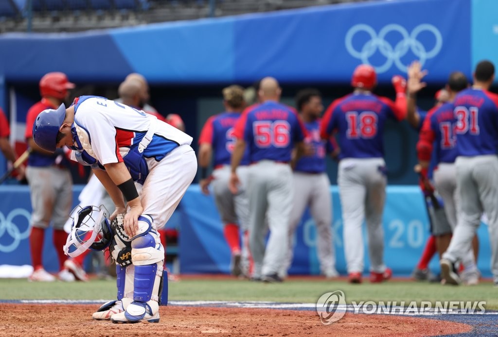 YOKOHAMA, Japan, Aug. 7 (Yonhap) -- South Korea blew a late lead and lost to the Dominican Republic 10-6 in the bronze medal game of the Tokyo Olympic baseball tournament Saturday, after coming within six outs of its second straight Olympic medal.