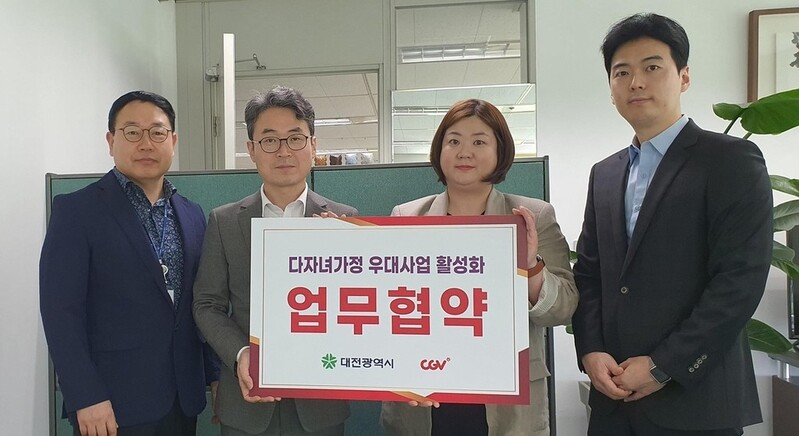 (대전=연합뉴스) 정윤덕 기자 = 미성년 자녀가 둘 이상 있는 대전지역 가정은 CGV 영화관에서 3천원씩 할인받을 수 있게 됐다.