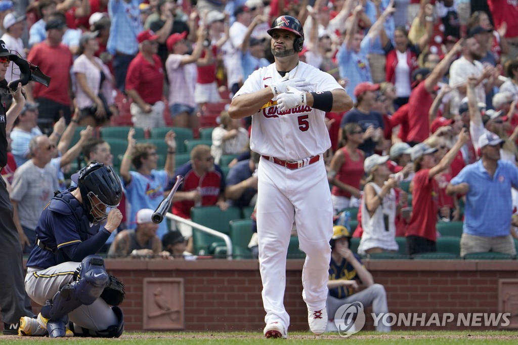 (서울=연합뉴스) 김경윤 기자 = 올 시즌을 마치고 은퇴하는 '살아있는 레전드' 앨버트 푸홀스(42·세인트루이스 카디널스)가 한 경기에서 홈런 2개를 몰아치며 시즌 10홈런 고지를 밟았다.