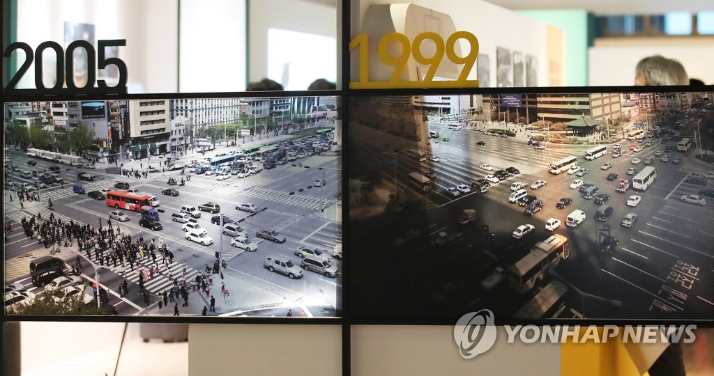 ▲ 광화문 거리 개발과 건설 (서울=연합뉴스) 강민지 기자 = 16일 오전 서울 종로구 대한민국역사박물관에서 열린 특별전 '공간으로 보는 한국 현대사, 광화문' 모습.