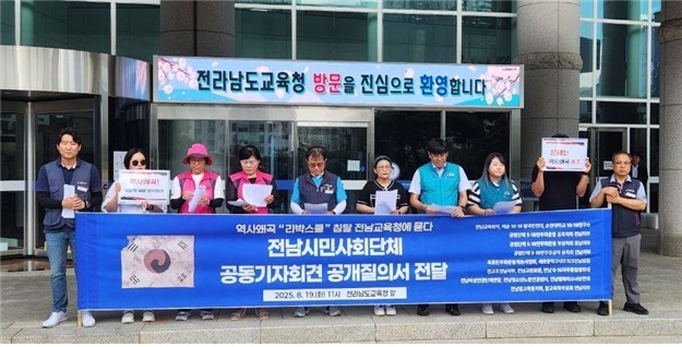 시민단체들은 역사 왜곡 도서 현황 전수조사 여부, 해당 학교명·도서명·처리 경과 공개, 역사·교육 전문가와 유족회 등이 참여하는 도서 검증 위원회 운영 의사 등을 묻는 공개 질의서를 교육청에 전달했다.