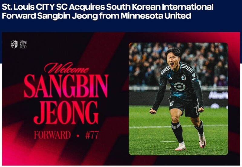 MLS에서 뛰는 정상빈, 미네소타에서 세인트루이스로 이적