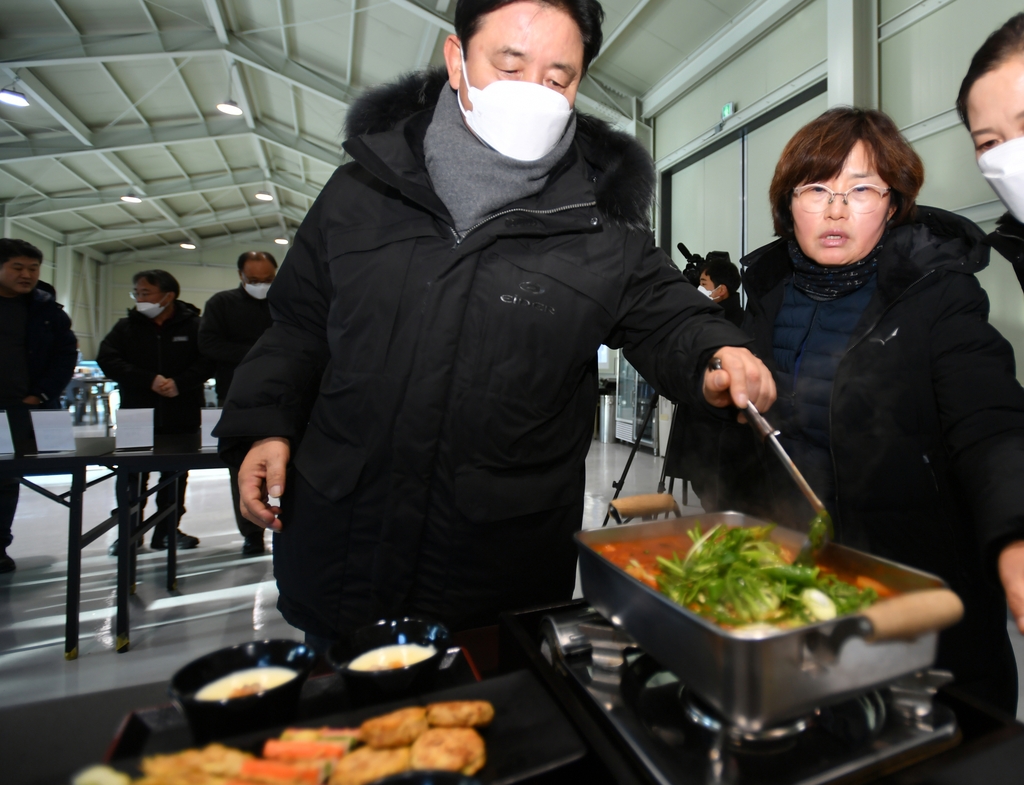 | ▲ 산천어 관련 메뉴 살펴보는 최문순 화천군수 [화천군 제공.재판매 및 DB 금지] |
