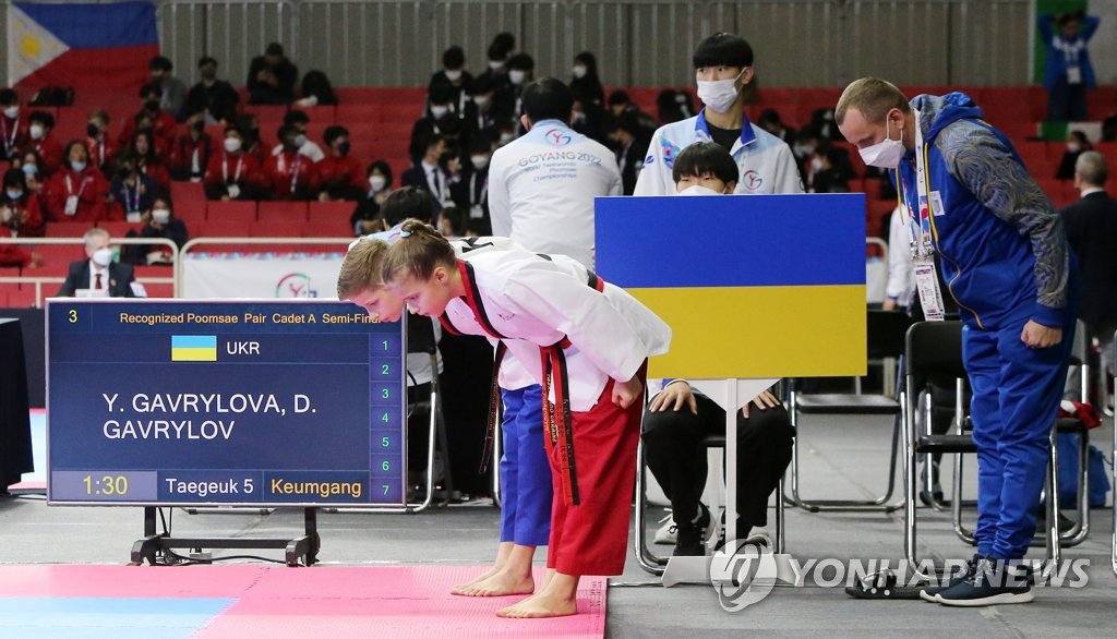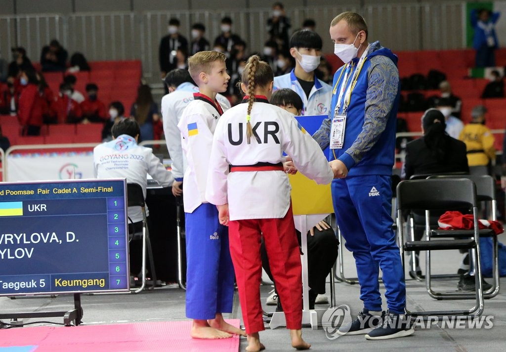 우크라이나는 21일 경기도 고양시 킨텍스에서 개막한 2022 고양 세계태권도품새선수권대회에 선수 2명과 감독 겸 단장인 매니저를 포함해 총 3명으로 꾸려진 선수단을 파견했다.