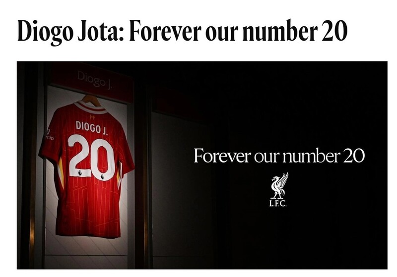 | ▲ 조타의 등번호 20번 영구결번을 발표한 리버풀 [리버풀 홈페이지 캡처. 재판매 및 DB 금지] |