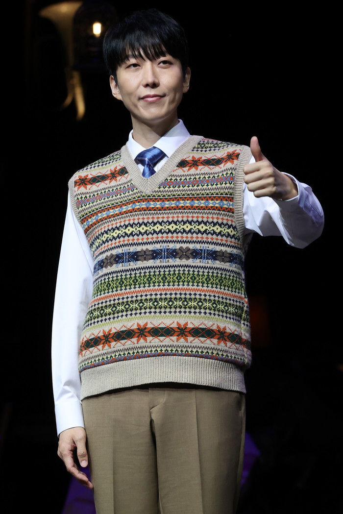 South Korean actor Kim Jae-beom poses for a photo during a publicity event for the new musical "Benjamin Button" in Seoul on May 16, 2024. The musical opened on May 11 and will run through June 30. (Yonhap)