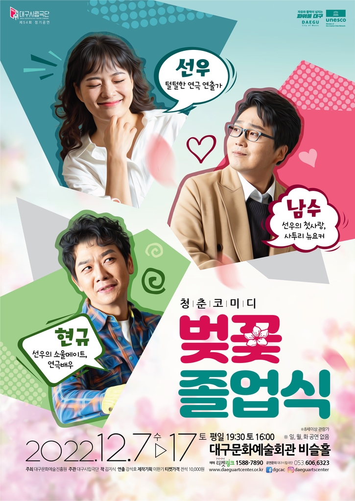 (대구=연합뉴스) 류성무 기자 = 대구시립극단은 다음 달 7∼17일 대구문화예술회관 비슬홀에서 청춘 코미디 연극 '벚꽃 졸업식'을 무대에 올린다.