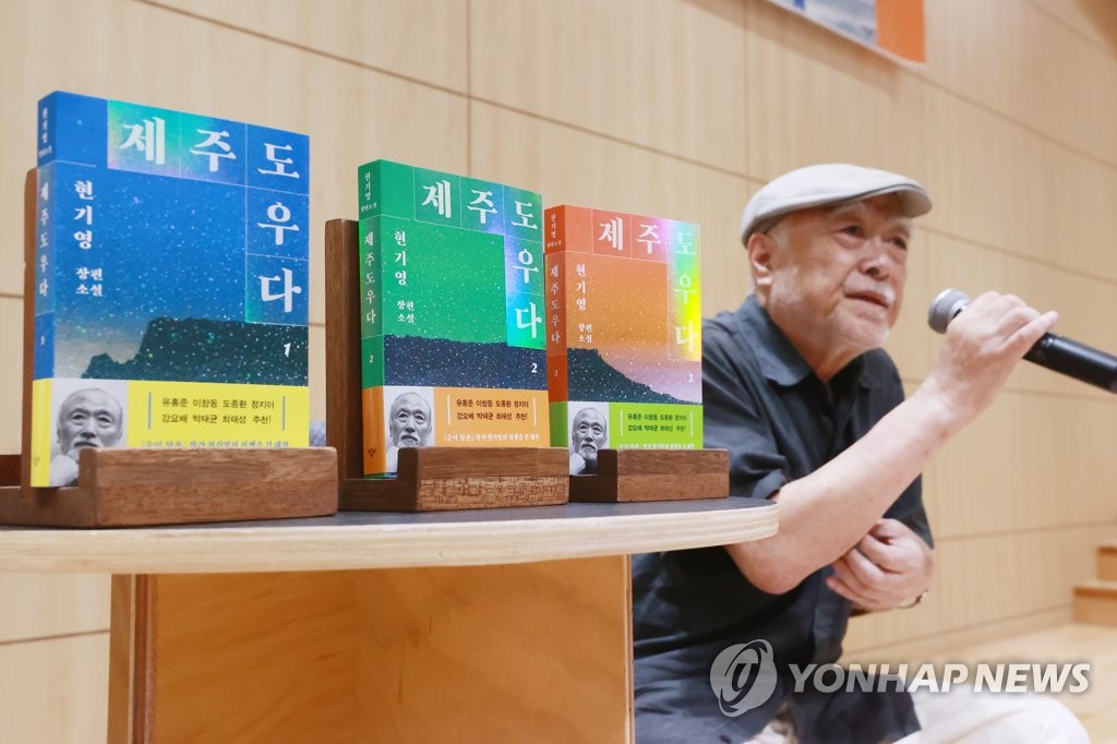 제주 출신의 원로작가 현기영(83)은 제주와 한반도 현대사의 뿌리를 다룬 신작 장편 '제주도우다'(창비)를 4·3 원혼들의 명령으로 썼다고 말했다.