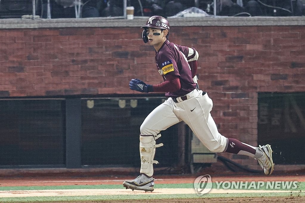 | ▲  In this file photo from Nov. 8, 2022, Lee Jung-hoo of the Kiwoom Heroes heads to first base after hitting a solo home run against the SSG Landers during the top of the sixth inning of Game 6 of the Korean Series at Incheon SSG Landers Field in Incheon, 30 kilometers west of Seoul. (Yonhap) |