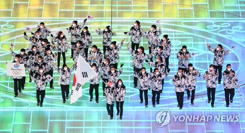 | ▲ [올림픽] 대한민국 선수단 입장 (베이징=연합뉴스) 김도훈 기자 = 4일 오후 중국 베이징 국립경기장에서 열린 2022 베이징 동계올림픽 개회식에서 대한민국 선수단이 입장하고 있다. 2022.2.5 superdoo82@yna.co.kr |
