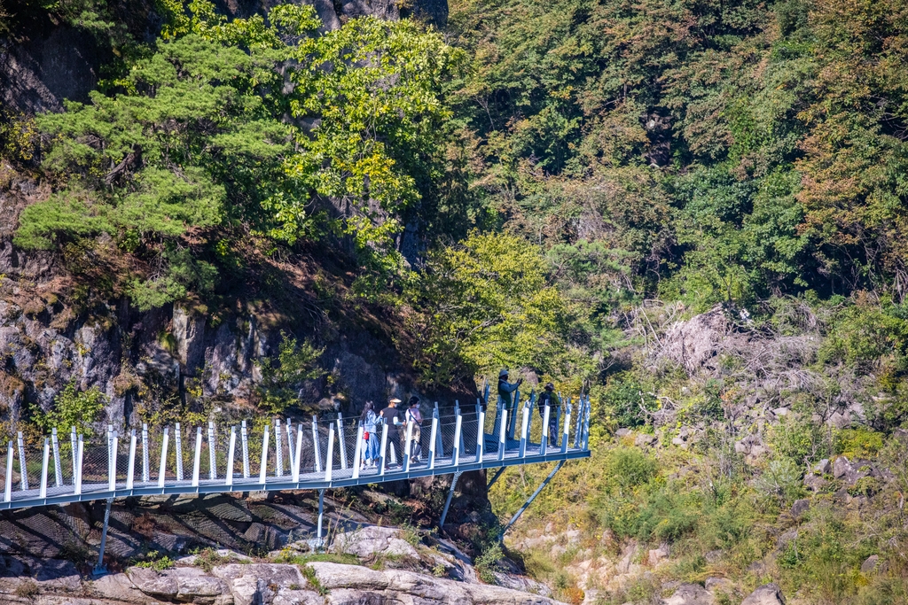 잔도를 찾은 관광객은 구름다리와 전망대를 걸으며 과거 화산활동이 빚은 주상절리를 가까이서 관람했다.