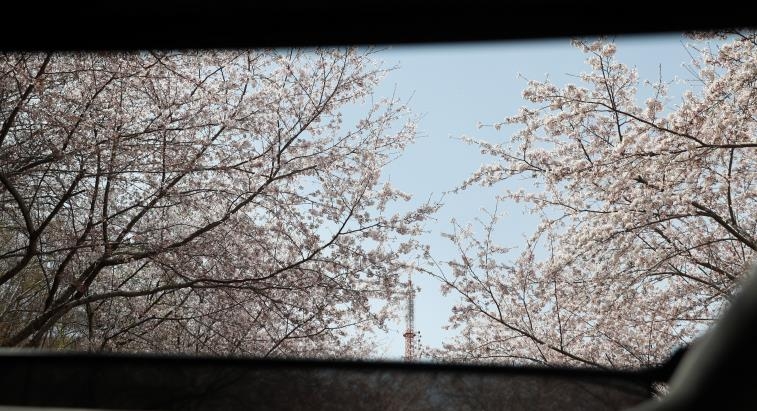 | ▲ 차량 선루프를 열고 본 벚꽃 (부산=연합뉴스) 손형주 기자 |