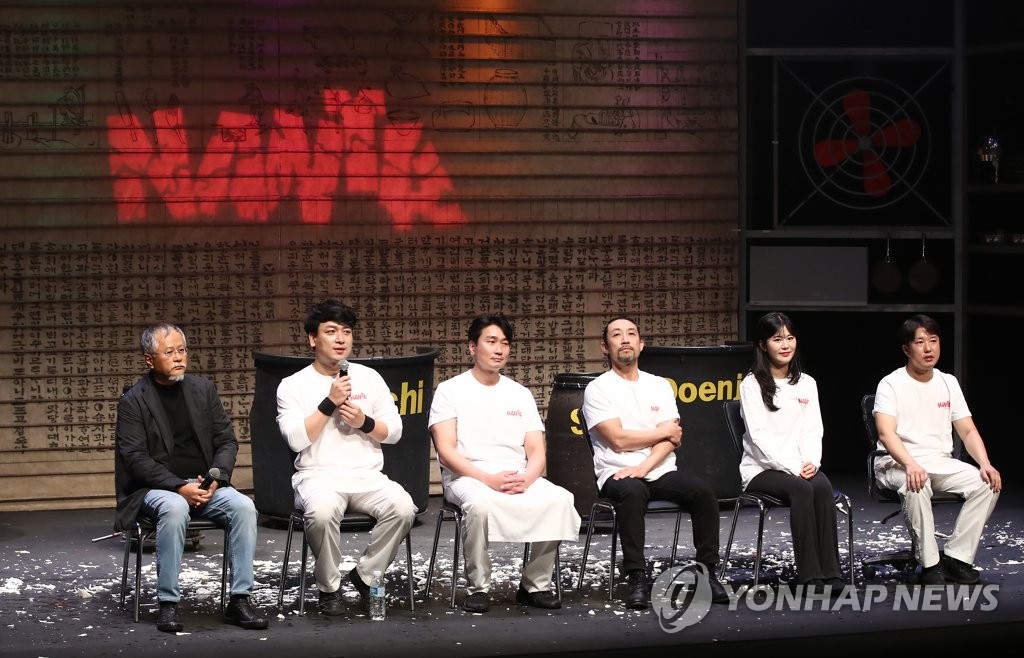 | ▲ 다시 모인 명동 '난타' 배우들 (서울=연합뉴스) 진연수 기자 = 18일 오후 서울 중구 명동 난타 전용관에서 열린 명동 '난타' 재개막 기념 기자간담회에서 배우들이 질문에 답하고 있다. 신종 코로나바이러스 감염증(코로나19) 여파로 중단됐던 '난타' 공연이 21개월 만에 오는 12월 2일부터 31일까지 명동 전용관에서 관객과 만난다. 2021.11.18 jin90@yna.co.kr |