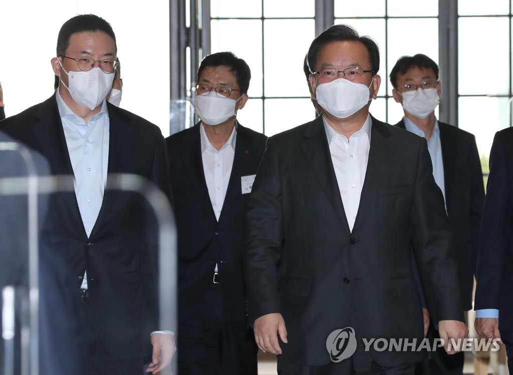 | ▲ Prime Minister Kim Boo-kyum (R) and LG Group Chairman Koo Kwang-mo (L) attend the Youth Hope ON event at LG Science Park in Seoul on Oct. 21, 2021. (Yonhap) |