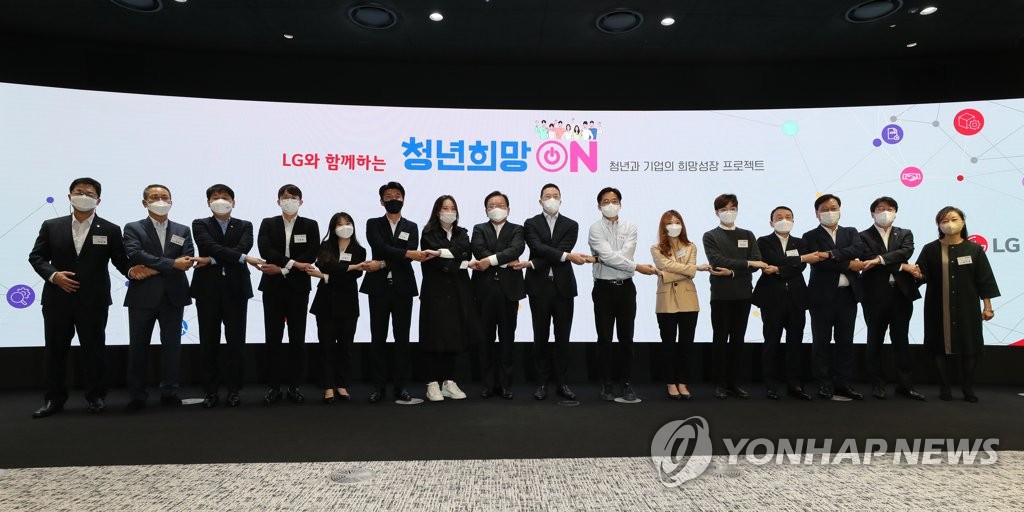 SEOUL, Oct. 21 (Yonhap) -- LG Group has promised to create 39,000 new youth jobs for the next three years after joining the government's youth job and education support project, the Prime Minister's Office said Thursday.