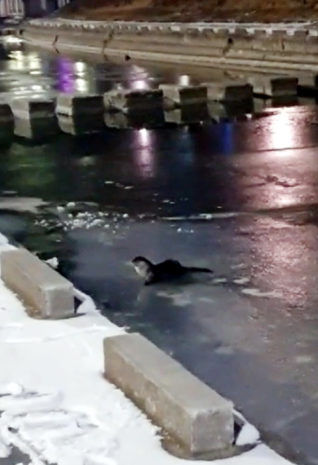 A씨가 전날 밤 촬영했다고 전한 영상에는 수달 한 마리가 얼어붙은 하천 위를 서성이고, 웅크려 쉬기를 반복하다가 인기척을 느낀 뒤 사라지는 모습이 담겼다.
