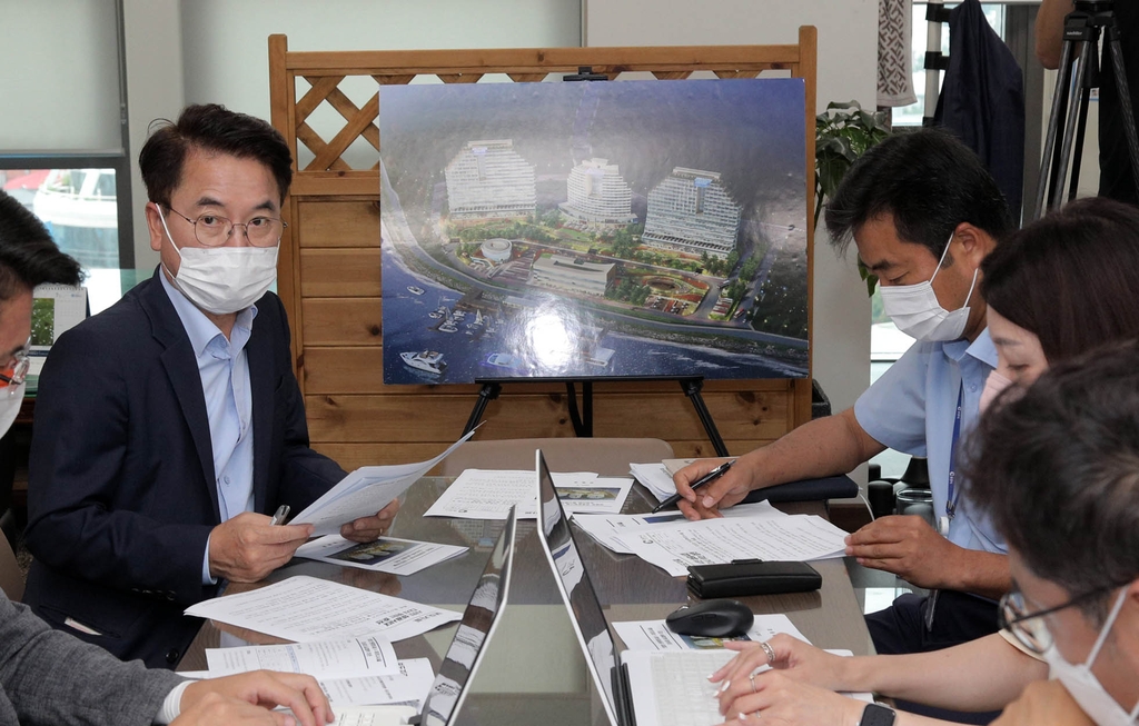 | ▲ 육동한 춘천시장(왼쪽) 마리나시설 관련 설명 [춘천시 제공.재판매 및 DB 금지] |