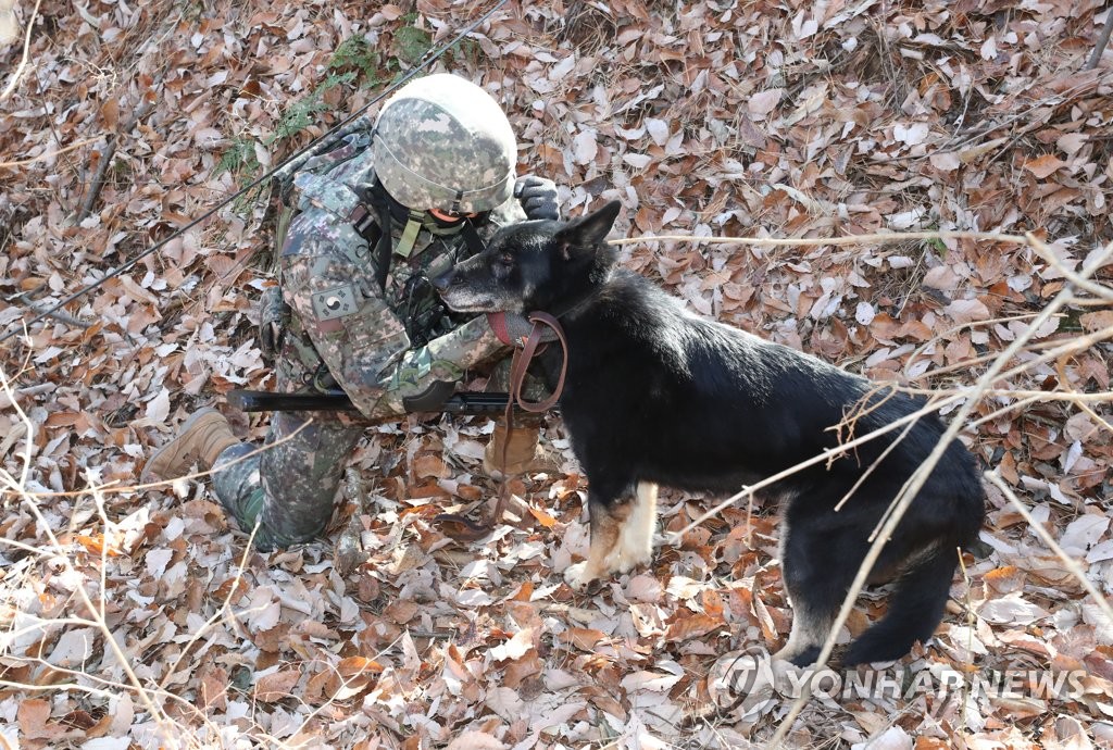 | ▲ 군견 달관이 마지막 훈련 (세종=연합뉴스) 이주형 기자 = 육군 32보병사단이 8일 세종 금남면 사단 기동대대에서 정찰견 달관이의 은퇴식을 연 가운데 이날 오전 달관이가 탐지 및 정찰훈련을 선보이고 있다. 2022.12.8 coolee@yna.co.kr |