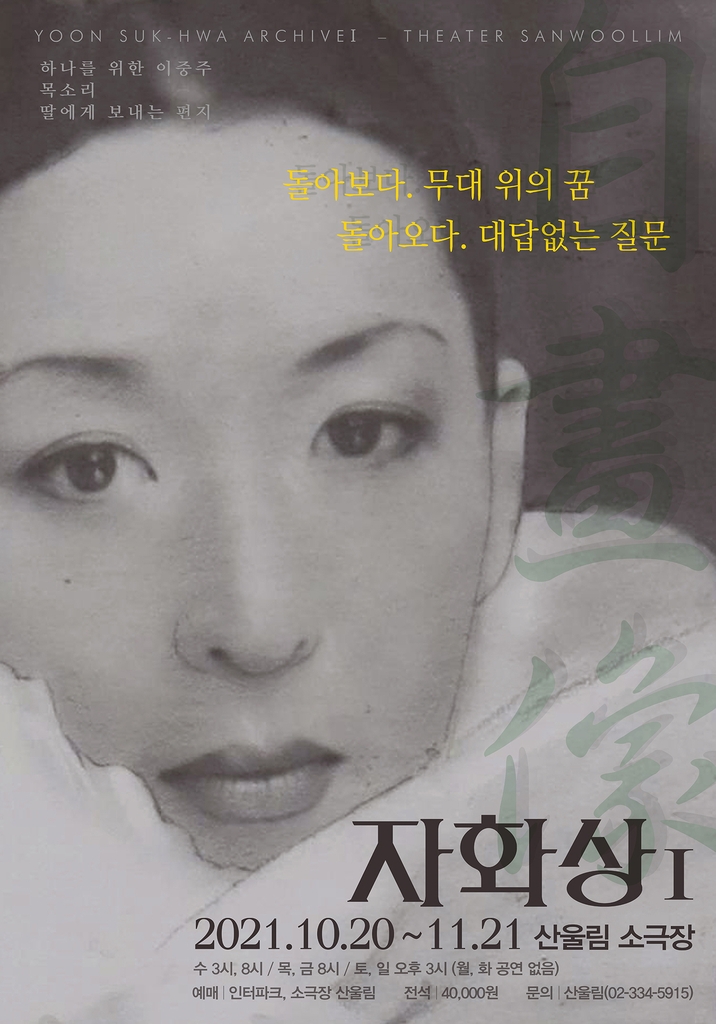 소극장 산울림은 오는 10월 20일부터 11월 21일까지 윤석화 아카이브 '자화상I'을 선보인다고 14일 밝혔다.