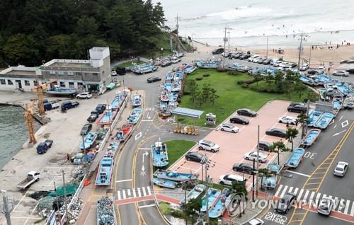 강원도 강릉 주문진항 등 동해안 항구에서는 어민들이 태풍 피해에 대비해 육지로 어선을 옮기느라 분주했다.