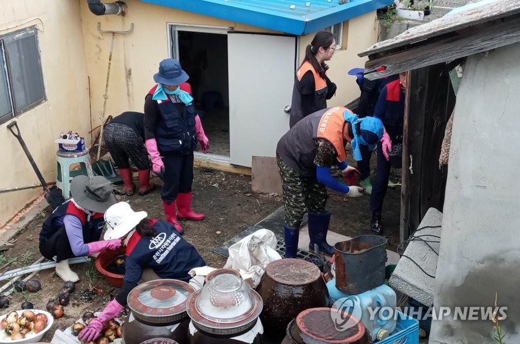 | ▲ 태풍 피해지역 돕는 봉사 손길 (강원 고성=연합뉴스) 13일 강원 고성군 토성면의 태풍 피해 가옥에서 자원봉사단이 엉망이 된 집을 치우고 있다. 2023.8.13 [강원 고성군 제공. 재판매 및 DB 금지] yangdoo@yna.co.kr |
