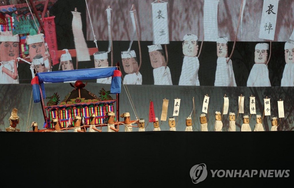 검은색 천으로 뒤덮인 무대는 작고 단출했지만, 조롱박으로 만든 작은 인형들은 쉼 없이 좌우로 몸을 흔들며 관객들의 시선을 붙잡았다.