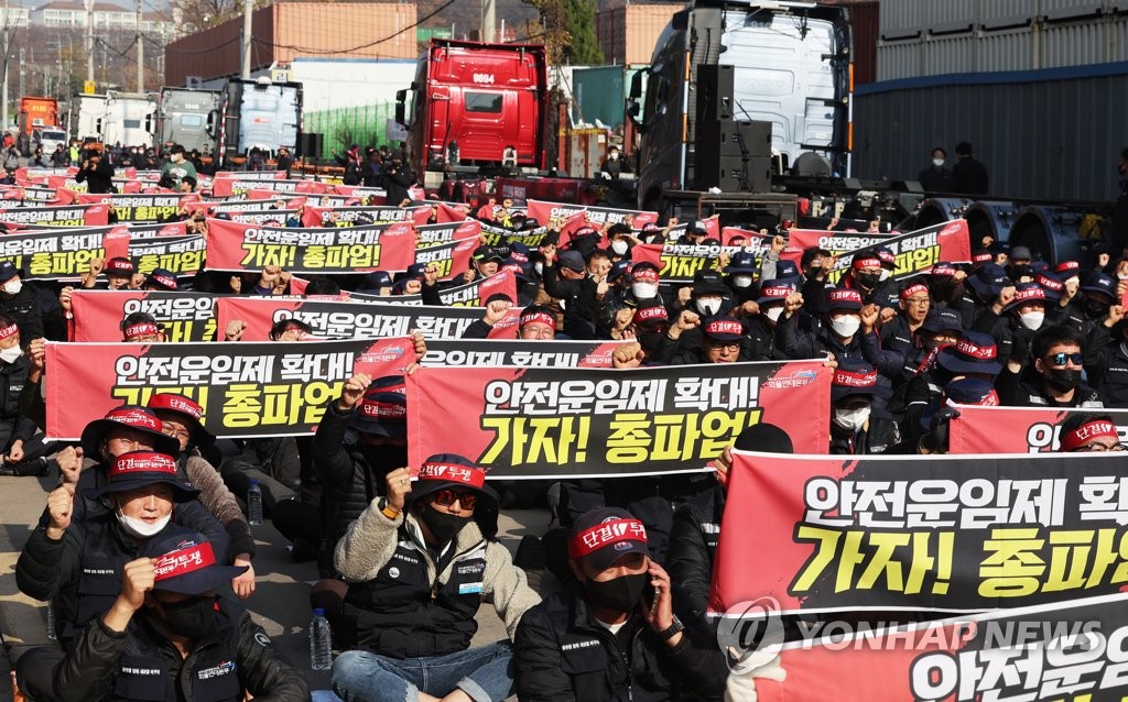 SEOUL, Nov. 26 (Yonhap) -- Striking cargo truckers and the government will sit down next week to seek a negotiated solution to the nationwide walkout that continued to disrupt supply chains across the cement and steel industries on its third day Saturday.
