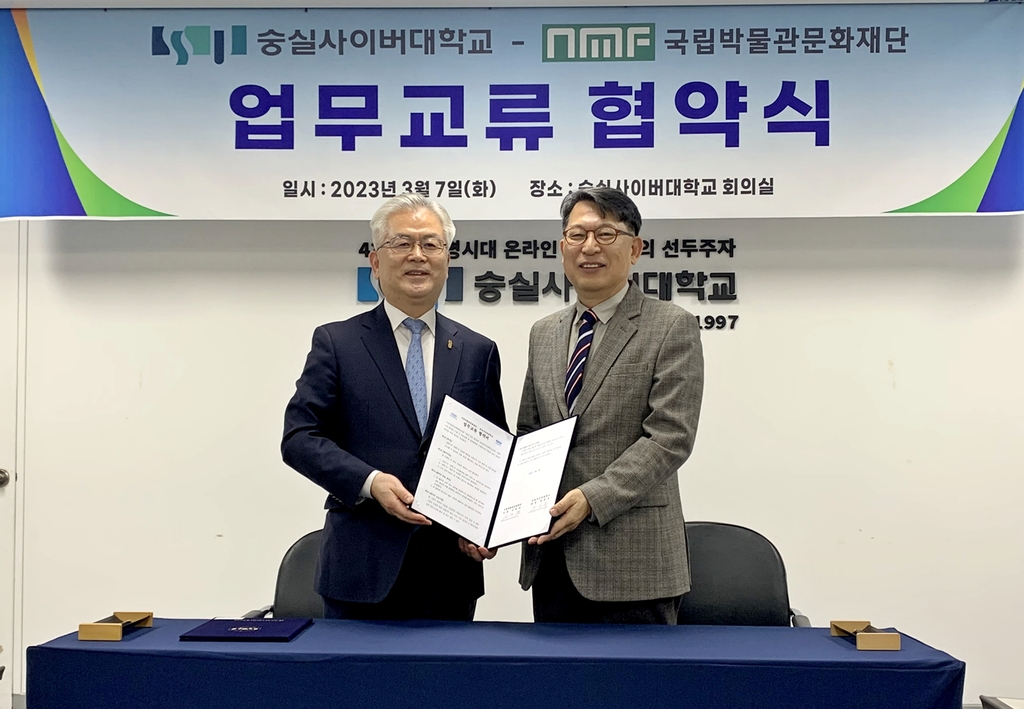 ▲ 국립박물관문화재단, 숭실사이버대와 인재 양성 업무협약 = 국립박물관문화재단은 숭실사이버대와 문화예술 분야 인재 양성을 위한 업무협약을 맺었다고 8일 밝혔다.