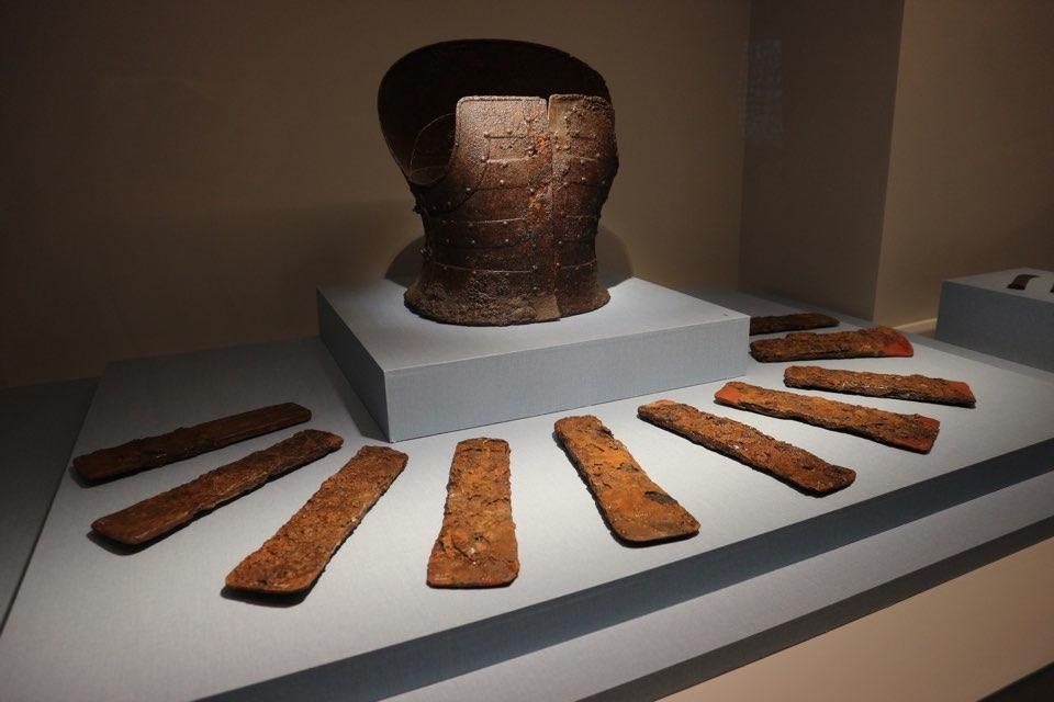 | ▲ 철제 갑옷과 덩이쇠 유물 (김해=연합뉴스) 김예나 기자 = 지난 26일 찾은 경남 김해시 국립김해박물관의 '바다를 건넌 가야인' 특별전 전시장에 일본에서 출토된 철제 갑옷과 덩이쇠 유물이 놓여 있다. 2023.4.27