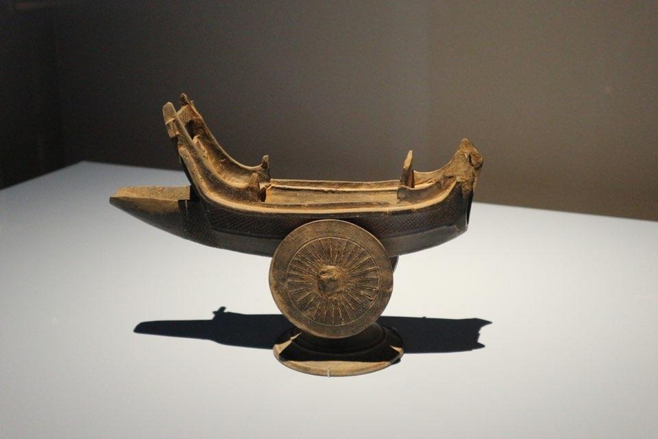 | ▲ '가야인, 물의 길을 열다' (김해=연합뉴스) 김예나 기자 = 지난 26일 찾은 경남 김해시 국립김해박물관 전시실 모습. '바다를 건넌 가야인' 특별전에서 선보이는 고(故) 이건희(1942∼2020) 삼성 선대회장 유족 기증품 '배 모양 토기' 모습. 2023.4.27