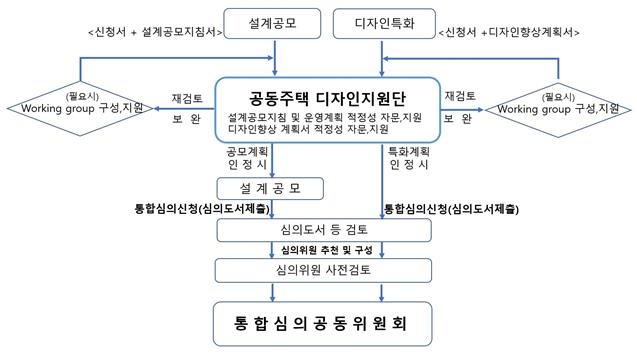 사업 주체는 디자인 향상 계획서를 수립해 공공 주택 디자인지원단 자문, 심의위원 검토 등 절차를 이행하면 통합 심의를 받을 수 있다.