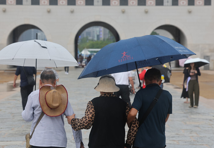 Chinese tourists visit Gyeongbok Palace, the main royal palace during the 1392-1910 Joseon Dynasty, in Seoul, on Aug. 6, 2025. South Korea will introduce a temporary visa waiver program for Chinese group tourists that comes into force from Sept. 29 to June 30 next year, as part of efforts to boost domestic spending and the tourism market. (Yonhap)