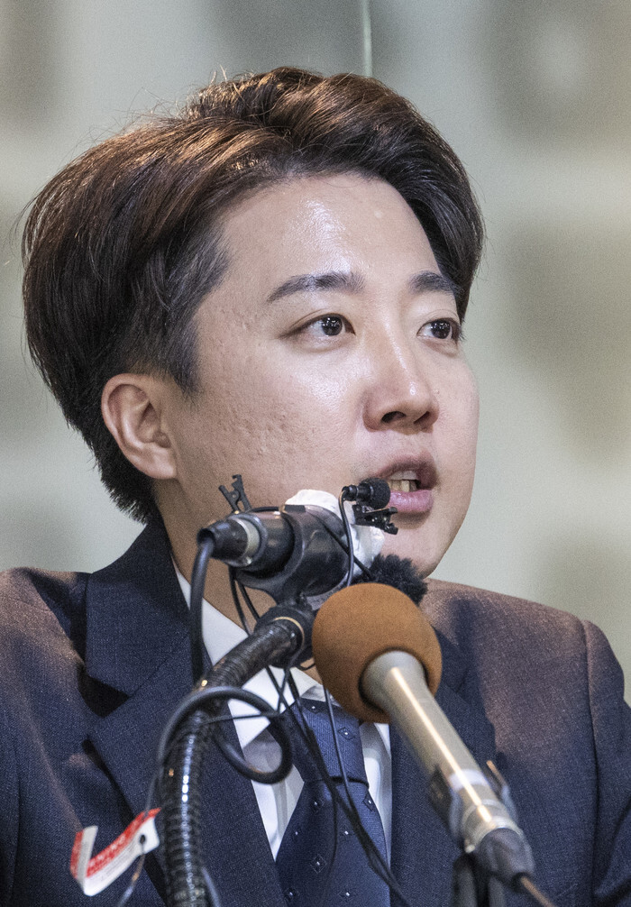 Lee Jun-seok, a lawmaker of the minor opposition New Reform Party and its candidate for the June 3 presidential election, attends a press conference for foreign correspondents at the Press Center in Seoul on April 28, 2025. (Yonhap)