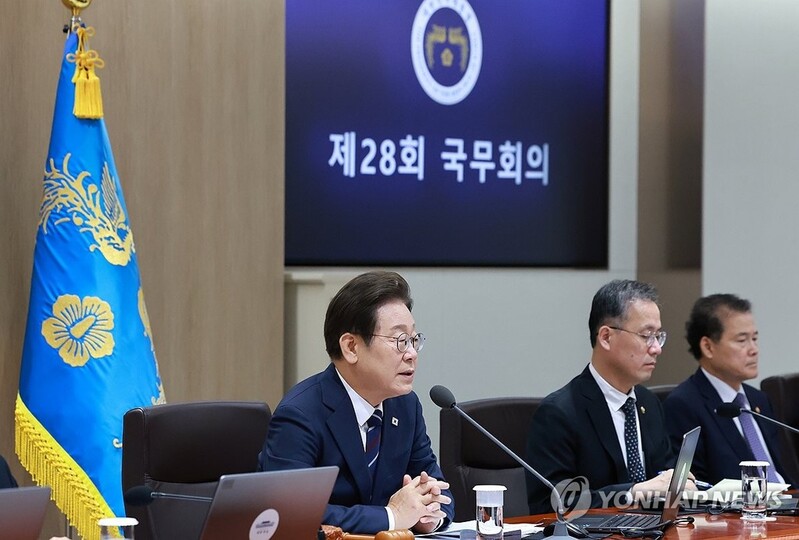 | ▲ 국무회의 발언하는 이재명 대통령 (서울=연합뉴스) 홍해인 기자 = 이재명 대통령이 1일 서울 용산 대통령실 청사에서 열린 국무회의에서 발언하고 있다. 2025.7.1 hihong@yna.co.kr |