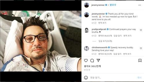 | ▲ 제레미 레너, 올해 초 사고 후 입원 중인 모습 [제러미 레너 인스타그램 캡처. 재판매 및 DB 금지] |