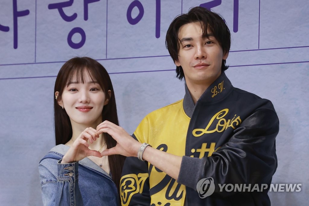 | ▲ Actors Kim Young-kwang (R) and Lee Sung-kyung of Disney+ series "Call It Love" pose for a photo during a press conference in Seoul on Feb. 21, 2023, in this file photo. (Yonhap) |