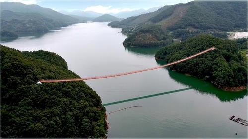제천 옥순봉 연결다리 222m 완공…탐방로 조성 뒤 10월 개통