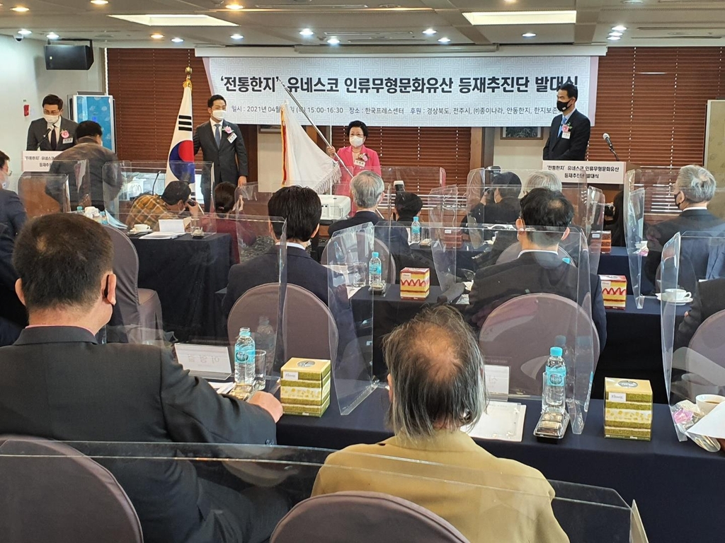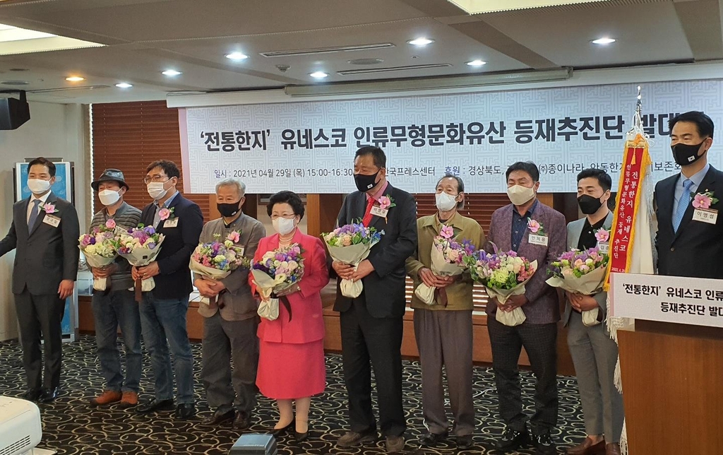 (서울=연합뉴스) 왕길환 기자 = 전통한지를 유네스코 인류무형문화유산으로 등재시키기 위한 추진단이 29일 서울 중구 프레스센터에서 출범했다.