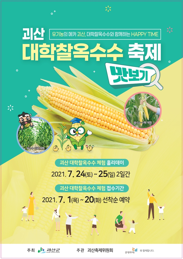 오는 20일까지 온라인(http://goesanfestival.com/corn/)으로 선착순 600명만 예약할 수 있으며 참가비 1인당 5천원이다.