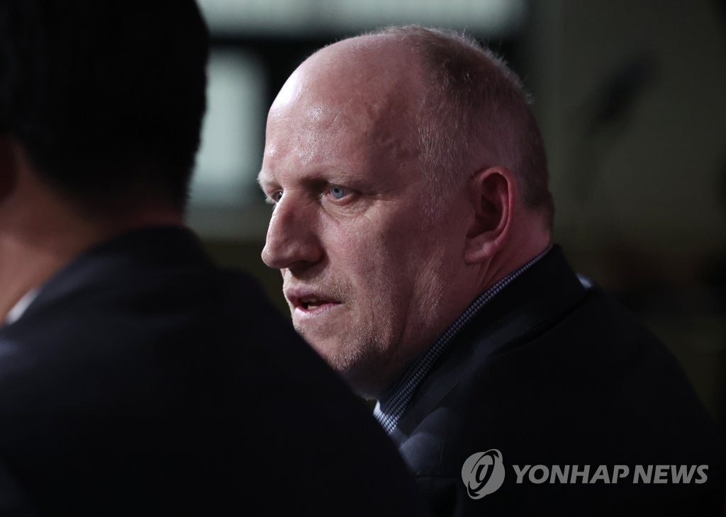 | ▲ 기자회견 하는 뮐러 위원장 (서울=연합뉴스) 최재구 기자 = 마이클 뮐러 대한축구협회 국가대표 전력강화위원장이 28일 대한민국 축구국가대표팀 새 감독인 위르겐 클리스만 감독 선임과 관련해 기자회견을 하고 있다. 2023.2.28 jjaek9@yna.co.kr |