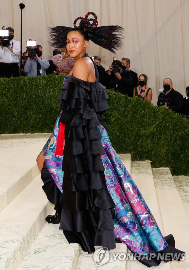 테니스 스타 오사카 나오미는 자신의 혈통인 아이티와 일본을 혼합한 차림을 선보였다.