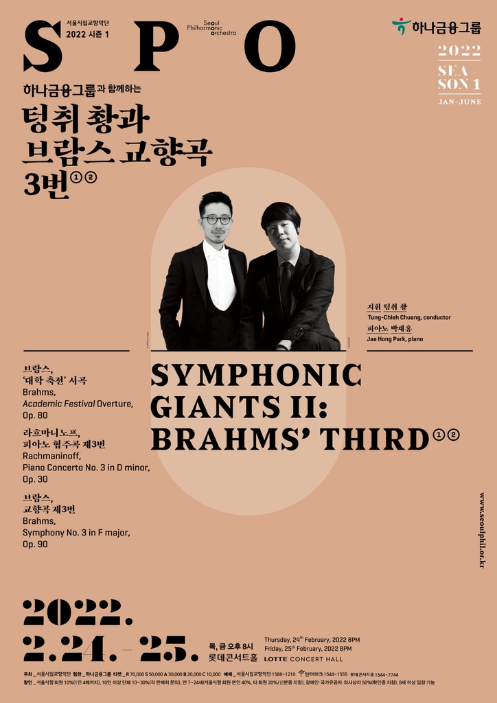 (서울=연합뉴스) 임동근 기자 = 서울시립교향악단은 '2022 시즌 1' 정기공연 '서울시향 텅취 촹과 브람스 교향곡 3번'을 오는 24∼25일 서울 송파구 롯데콘서트홀에서 개최한다고 17일 밝혔다.