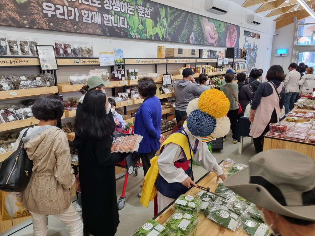 (춘천=연합뉴스) 이상학 기자 = 강원 춘천지역에서 생산한 농축산물을 중간 유통과정 없이 직접 소비자들에게 판매하는 매장이 20일 오후 문을 열었다.