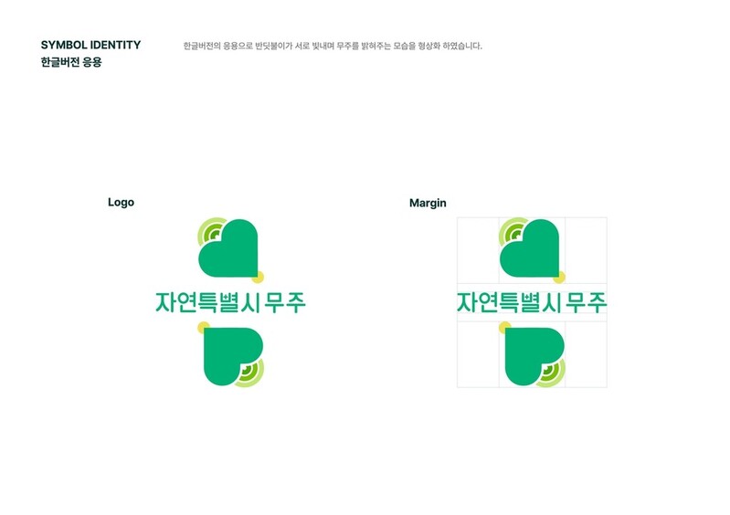 새 BI는 무주 상징물인 반딧불이, 덕유산, 다슬기 모양을 형상화하고 초록색 자연을 강조하면서 '자연특별시 무주'라고 표현했다.