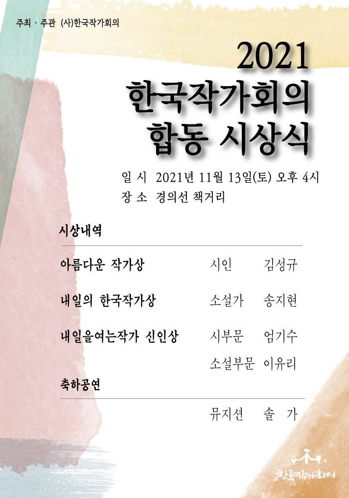 시상식은 13일 오후 4시 서울 마포구 경의선책거리 2층 공간산책에서 진행된다.