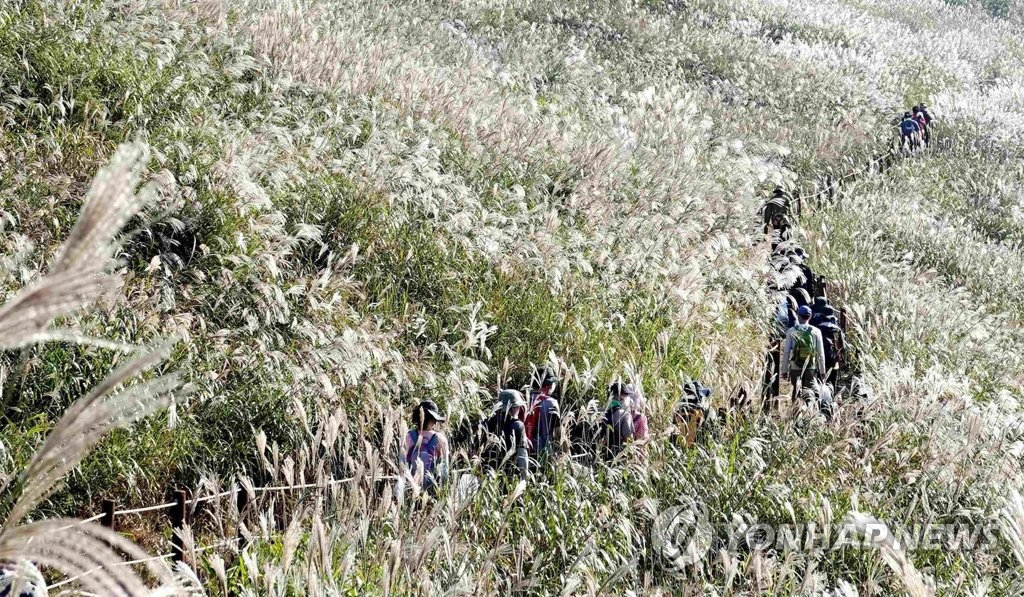 | ▲ 억새 천지 (창녕=연합뉴스) 경남 창녕군 화왕산 억새군락을 탐방객들이 지나고 있다. 2021.10.26 [창녕군 제공. 재판매 및 DB 금지] seaman@yna.co.kr |