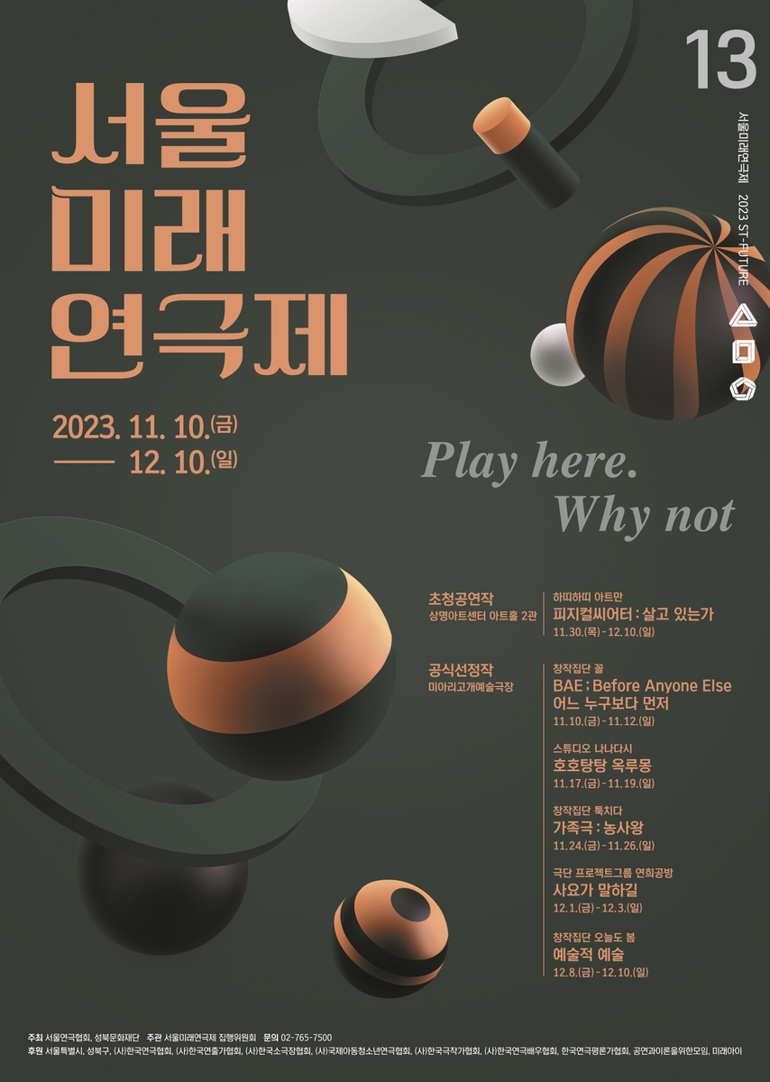 11월 10일부터 12월 10일까지 서울 성북구 미아리고개예술극장 등지에서 열리는 제13회 서울미래연극제는 도전적이고 혁신적인 연극을 무대에 올린다.