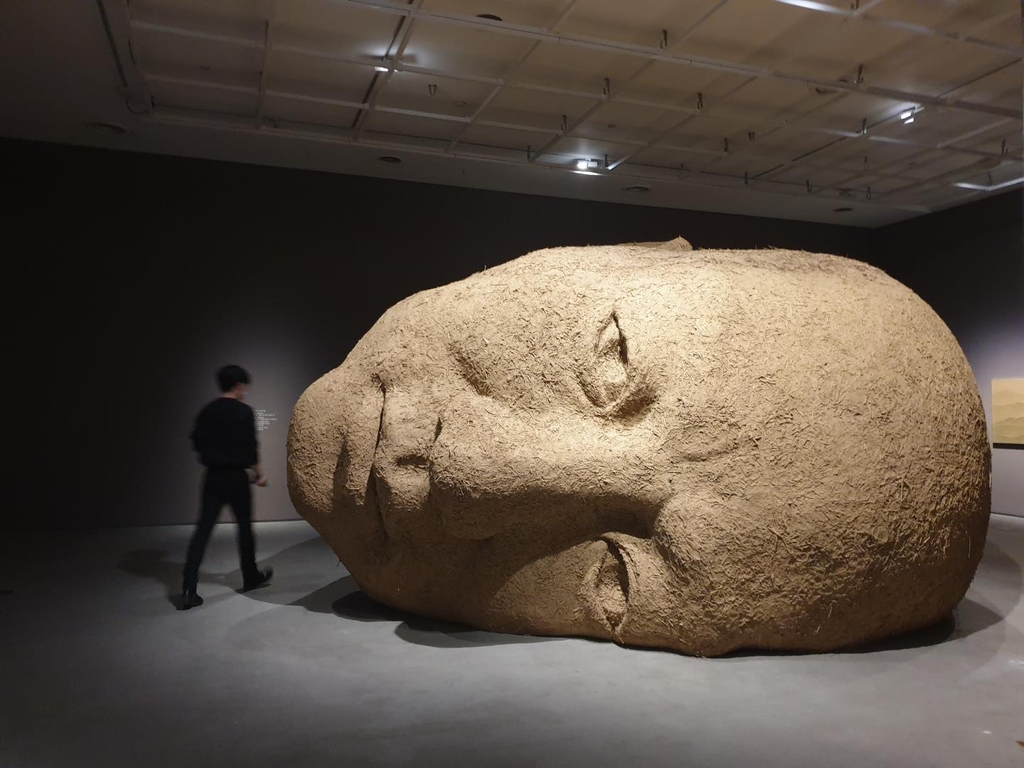 6전시실에 설치된 또 다른 작품 '흙의 소리'도 역시 흙이 주된 소재다. 거대한 머리가 옆으로 누워 있는 형상으로, 작품 한편의 입구를 통해 동굴 같은 어두컴컴한 공간으로 들어가면 숨소리 같은 소리가 들려온다.