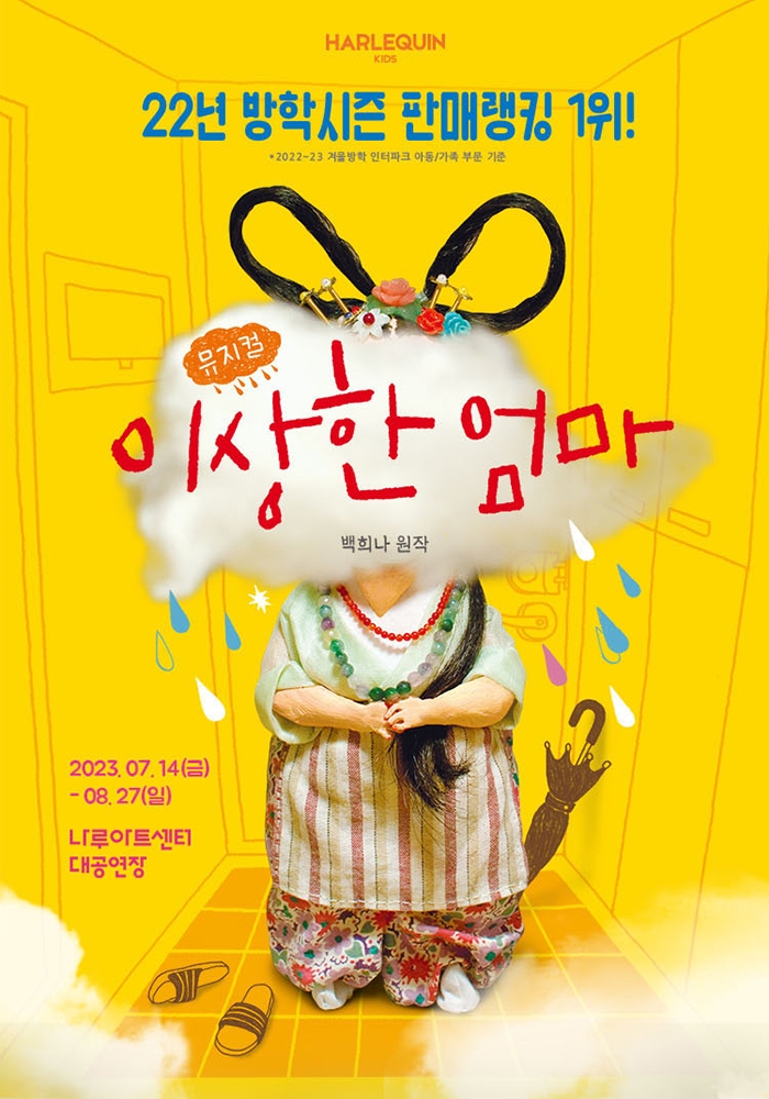 ▲ 백희나 작가 동화 각색한 뮤지컬 '이상한 엄마' = 광진문화재단과 할리퀸크리에이션즈는 오는 14일부터 8월 27일까지 서울 광진구 나루아트센터 대공연장에서 뮤지컬 '이상한 엄마'를 공연한다.